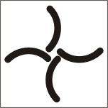 Durch schrittweise Veränderung der Position der durch Drehung der Linien können unterschiedlich anmutende Zeichen entwickelt werden oder eine einfache Bewegung visualisiert werden.
